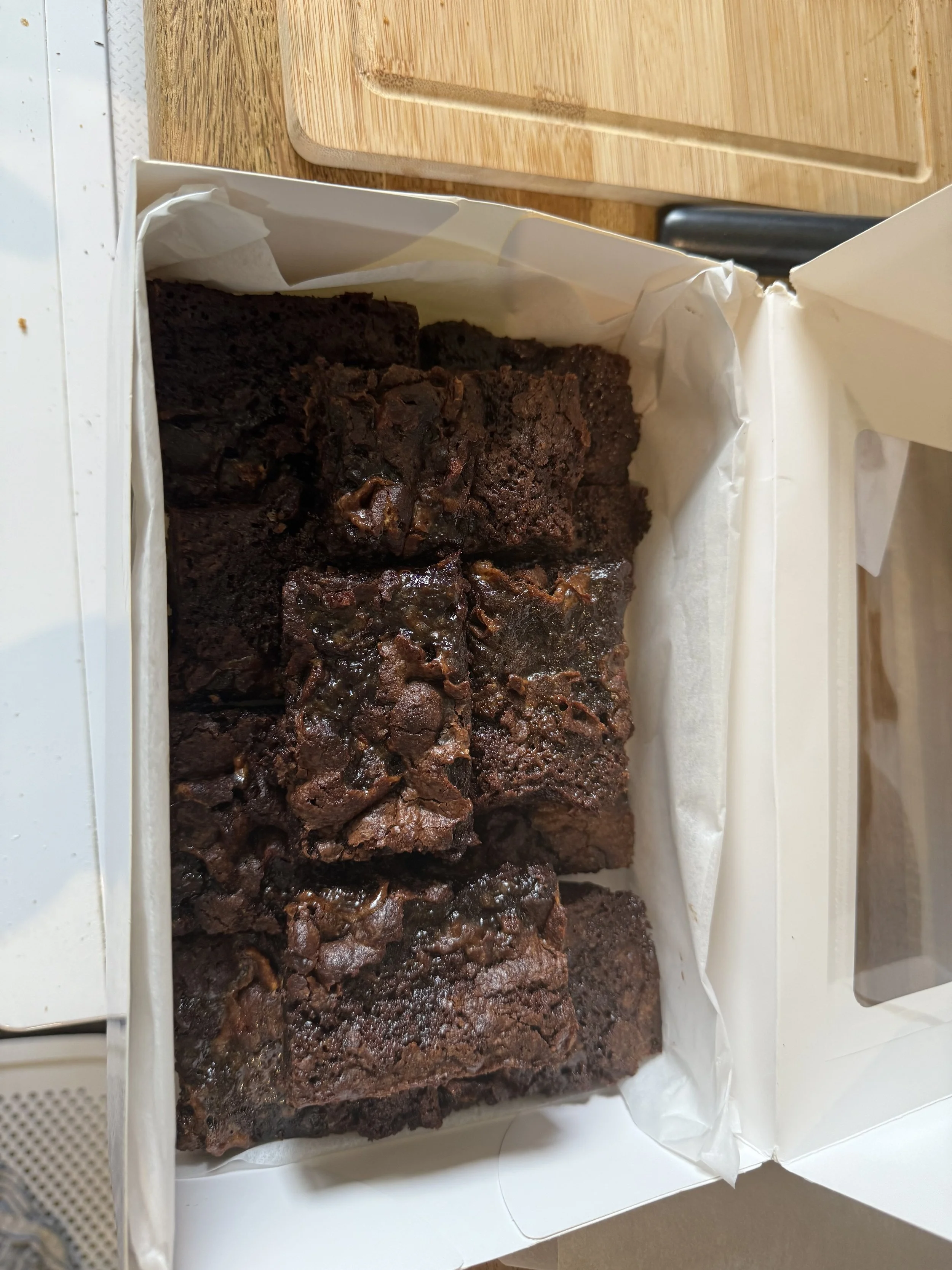 How do you feel about a gooey brownie with a flakey top? Sound good? Get some here! Chocolatey, gooey, flakey top, add marshmallows for a added squish.